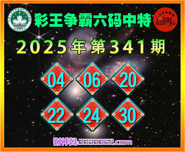 341期:〖彩王争霸〗 😜六码中特😜【04.06.20.22.24.30】开:06