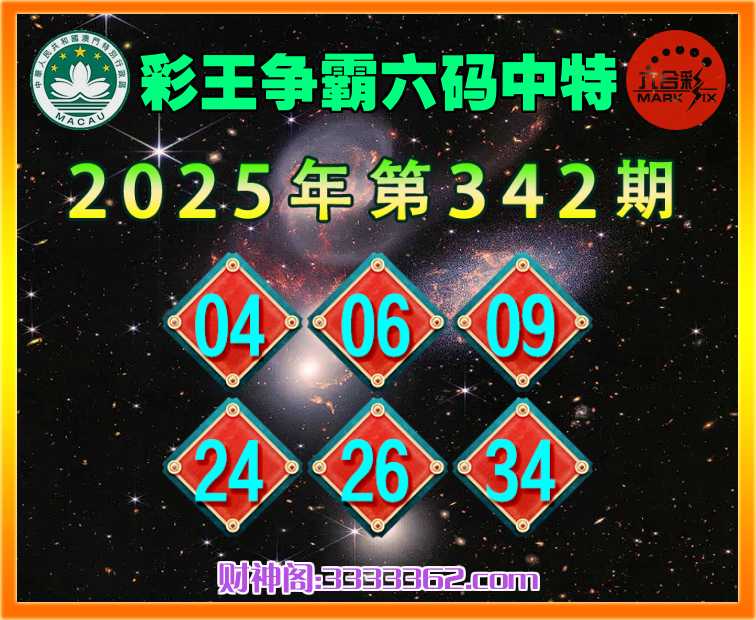342期:〖彩王争霸〗 😜六码中特😜【04.06.09.24.26.34】开:04