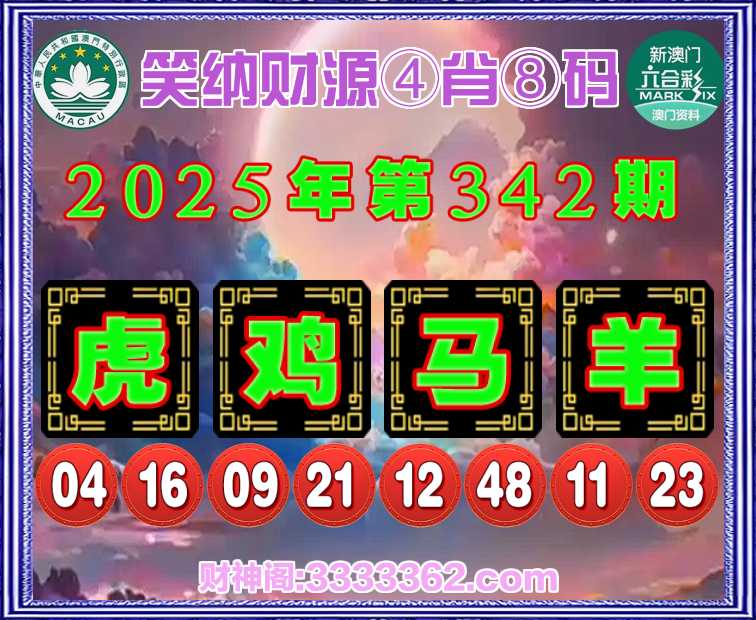 342期:《笑纳财源》 🍕④肖⑧码🍕【鸡马羊】开:虎04