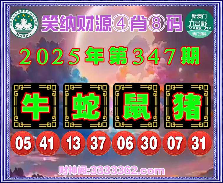 347期:《笑纳财源》 🍕④肖⑧码🍕【牛鼠猪】开:蛇13