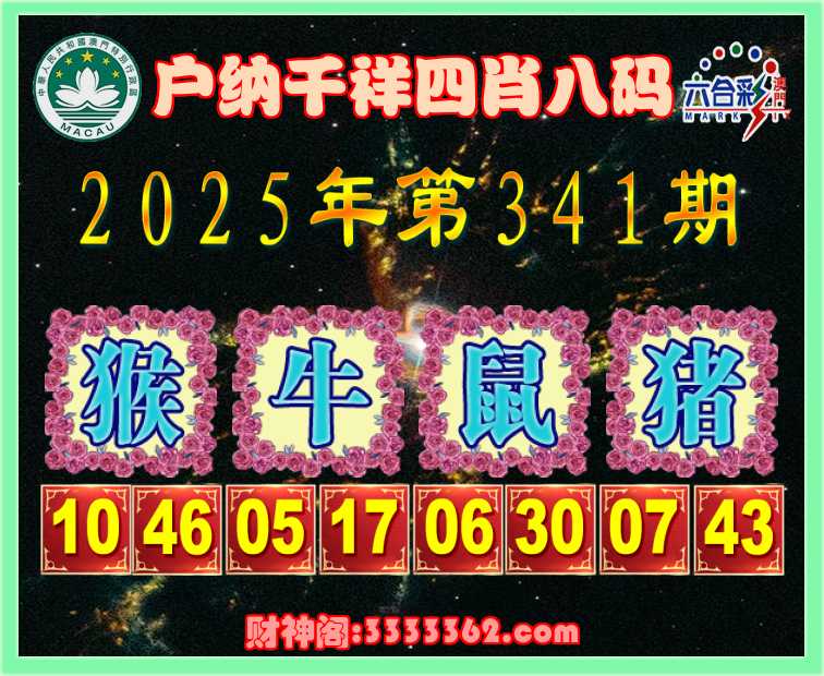 341期:《户纳千祥》 🏇四肖八码🏇【猴牛猪】开:鼠06