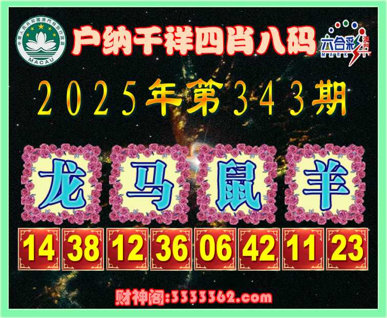 343期:《户纳千祥》 🏇四肖八码🏇【龙马鼠羊】开:00准