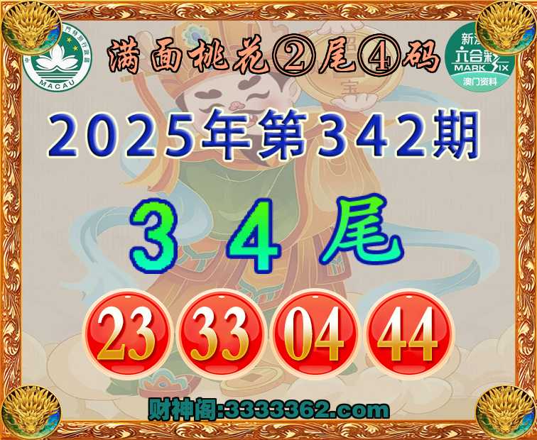 342期:〖满面桃花〗 🚲②尾④码🚲【34尾主:23.33.04.44】开:04