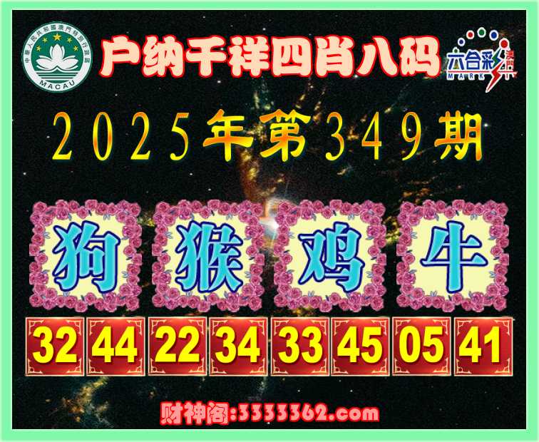 349期:《户纳千祥》 🏇四肖八码🏇【狗猴鸡牛】开:00准